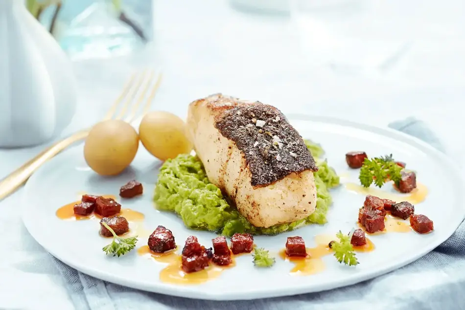Årets første skrei er et godt valg til morsdagsmiddagen. Hva med godt tilbehør som potet fra Bjertnæs & Hoel, med hollandaise-saus og sprøstekt bacon fra Jacobs Utvalgte? Tilfør litt ekstra med å lage en herlig stuing av selskapserter.